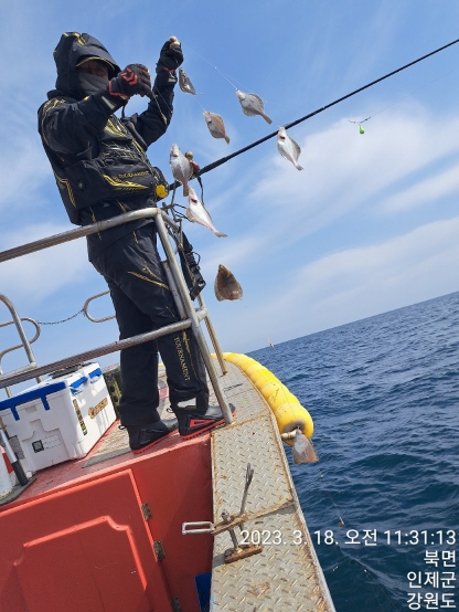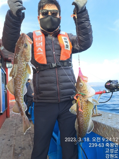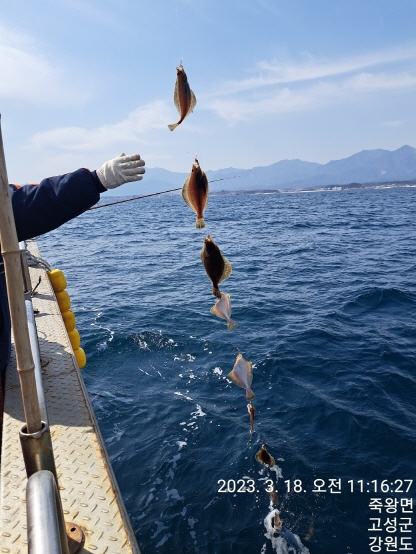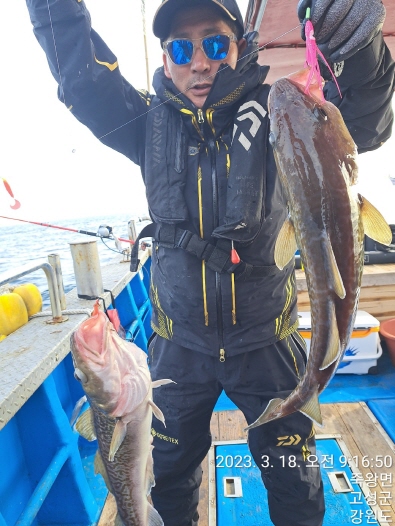 성복호 초보분들모시고 어구가자미 잡다가 대구포인트로 이동했습니다
