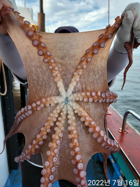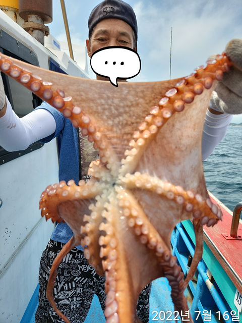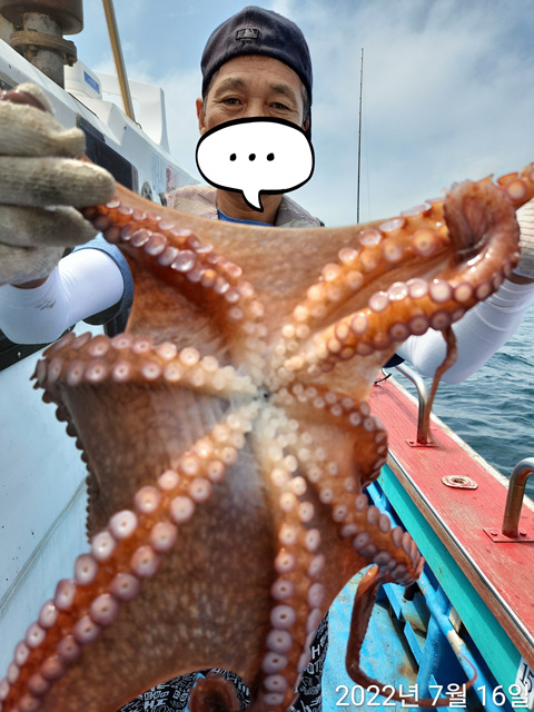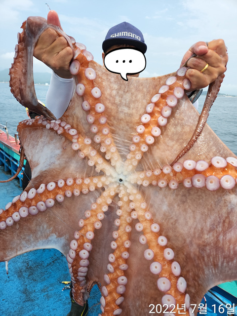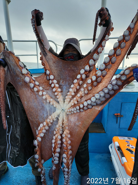 35키로 대왕문어 잡앗습니다 곧이어 7키로 3키로 몇마리 잡았다고합니다